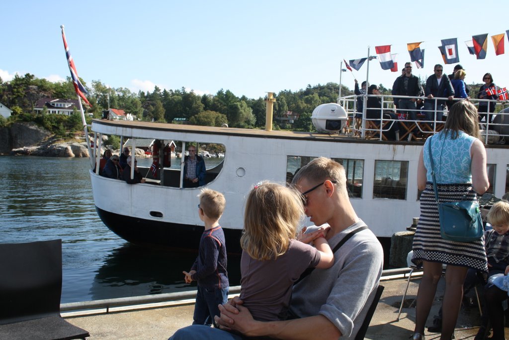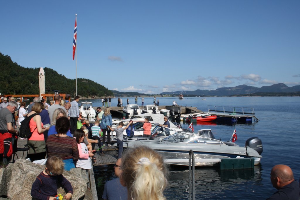 Som annonsert kom Riskafjord seilande inn til Bersagel kai kl 12:00 med full båt. Det ble et gjensidig hjertelig velkomst med taler fra både mannskap og Bersagel Vel.